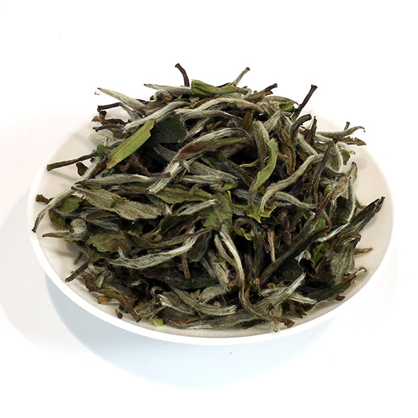 Bai Mu Dan is a tea blended with white tea leaves and delicate unopened young silver fuzzy buds. The leaves are naturally dried with a hint of oxidation, maintaining a beautiful green appearance.