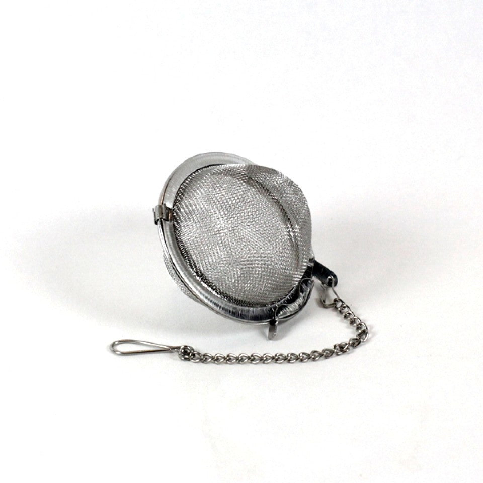 Use this handy strainer to brew your favorite teas! Available in two sizes, these stainless steel mesh strainers easily open and close with a latch and comes with a chain and hook to keep it anchored from the edge of your mug or tea pot.
